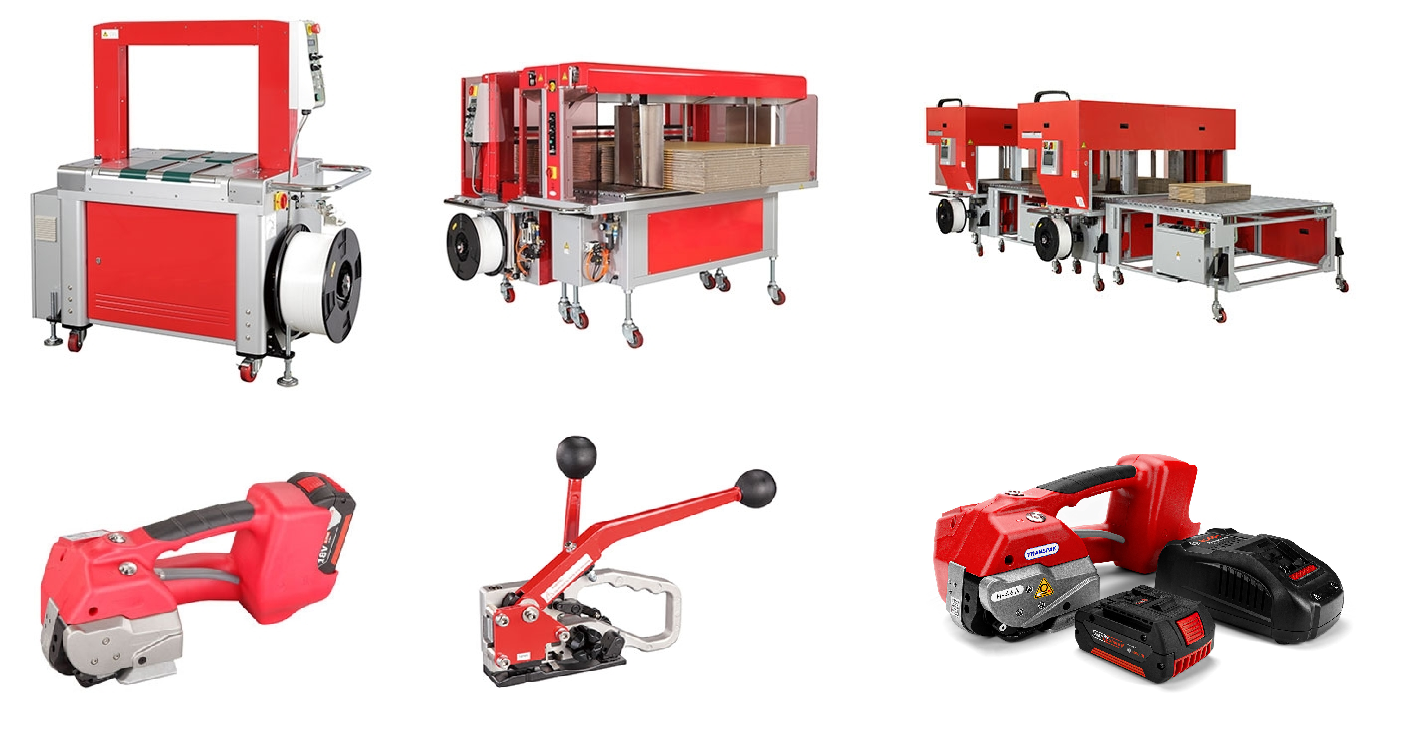 Transpak cung cấp các thiết bị từ dụng cụ cầm tay đến máy đóng đai tự động hoàn chỉnh, đáp ứng nhiều loại vật liệu đai khác nhau như PP, PET, thép, phù hợp với hệ thống đóng gói hộp, kiện hàng, pallet…